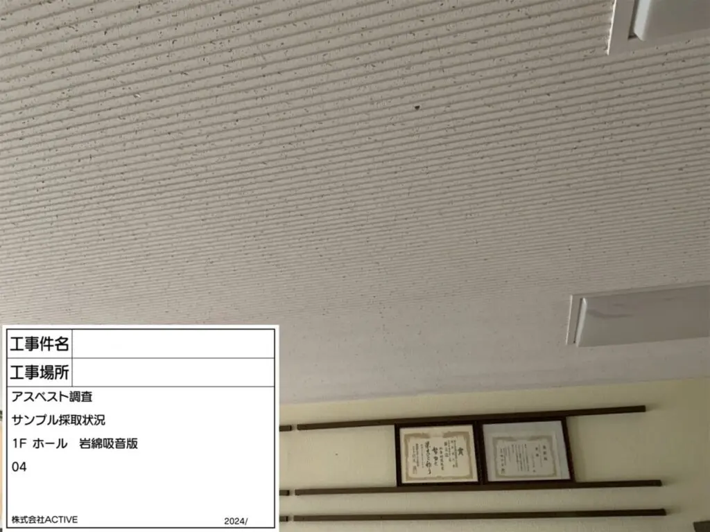 アスベスト(石綿)事前調査、分析用検体採取(岩綿吸音板・ホール)